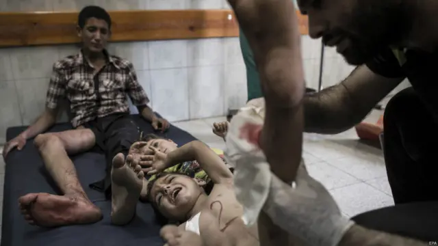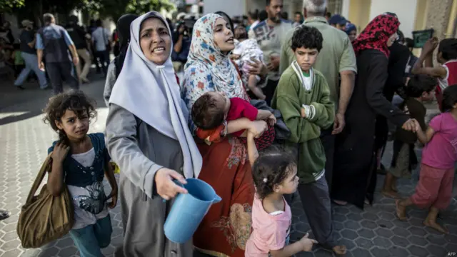 توضیح تصویر، زنی عزادار که یکی از نزدیکانش را در حمله اسرائیل به مدرسه سازمان ملل از دست داده است. تاکنون بیش از ٧٥٠ فلسطینی در این حملات کشته شدندتوضیح تصویر، در حمله به این مدرسه دست کم ١٥ نفر کشته شدندتوضیح تصویر، بان کی مون این حمله را شدیدا محکوم کرده استتوضیح تصویر، دهها هزار فلسطینی از خانههای خود گریخته . در مدارس سازمان ملل پناه گرفتهاند