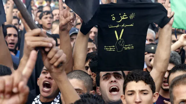 در کرانه باختری رود اردن هم فلسطینیها نماز عید را روبروی دیوار حائل اسرائیل به جا آوردند و با پوشش و پرچم و شعارهایشان خواهان توقف حملات به غزه شدند.
