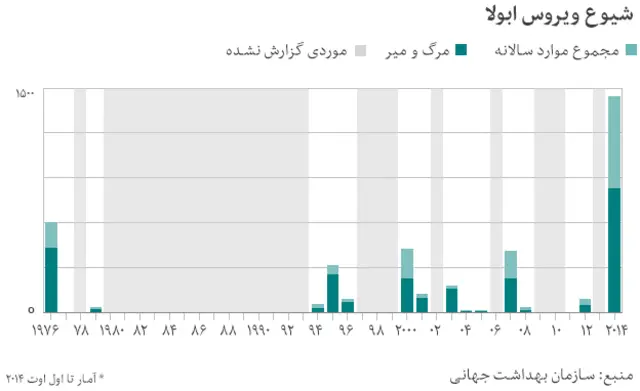از زمان کشف ویروس ابولا، تعداد قربانیان آن هیچگاه به اندازه سال جاری میلادی نبوده است. امسال در کشورهای گینه، لیبریا، سیرالئون، و نیجریه ۹۰۰ نفر در اثر ابتلا به این بیماری جان دادهاند.