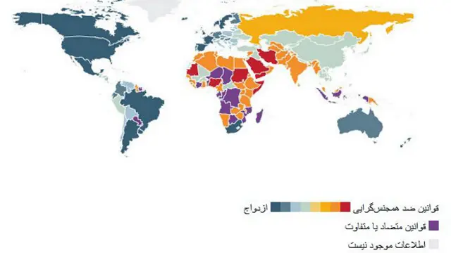 برای اینکه ببینید در کدام کشورها ازدواج همجنسگرایان قانونی و در کجا غیرقانونی است، <bold><link type="page"><caption> نقشه قابل کلیک جهان را اینجا ببینید.</caption><url href="http://www.bbc.co.uk/persian/world/2014/02/140214_gay_rights_map.shtml" platform="highweb"/></link></bold>