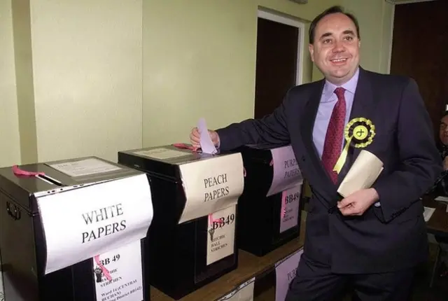 افزایش اختیارات محلی اسکاتلند فرصت بزرگی برای حزب او بود. با اینکه این حزب پیروز اولین انتخابات پارلمان اسکاتلند در سال ۱۹۹۹ نبود، ولی توانست با تصاحب کرسی های کافی خود را به جناح اصلی منتقدان بدل کند.