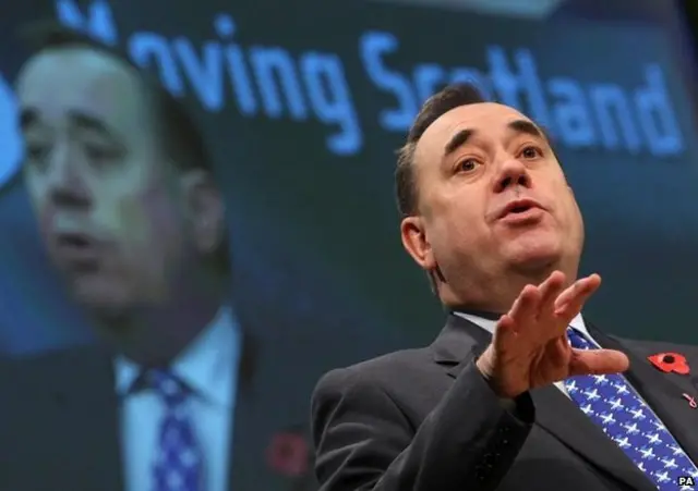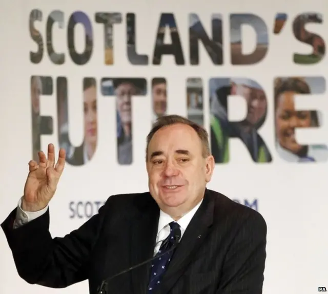 وزیر اول دولت محلی اسکاتلند، در کنار دولتش و جنبش استقلال، همواره ادعا کردهاند که اسکاتلند میتواند یکی از ثروتمندترین کشورهای کوچک دنیا باشد – مخالفان میگویند او حاضر است برای گرفتن رأی «آری» هر حرفی بزند.