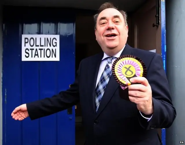 الکس ساموند، در جایگاه وزیر اول دولت محلی اسکاتلند و رهبر حزب ملی و استقلال طلبان این کشور است.