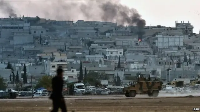 به گفته پل آدامز خبرنگار بی بی سی در آن سوی مرز در ترکیه به نظر می رسد که جنگجویان کرد مدافع شهر هم اکنون درحال هماهنگ سازی مستقیم حملات با ائتلاف تحت فرماندهی آمریکا باشند. اما حملات هوایی ممکن است به تنهایی برای جلوگیری از افتادن کوبانی به دست داعش در دراز مدت کافی نباشد.
