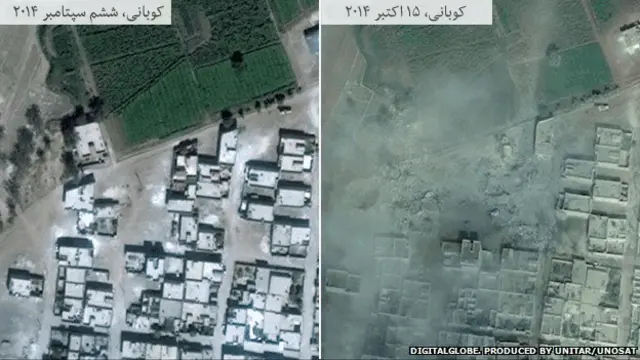 کوبانی از آسمان؛ قبل و بعد از نبرد