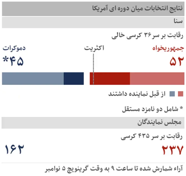 حزب جمهوریخواه آمریکا با پیروزی در انتخابات میاندورهای این کشور توانست کنترل مجلس سنای این کشور را در دست بگیرد.