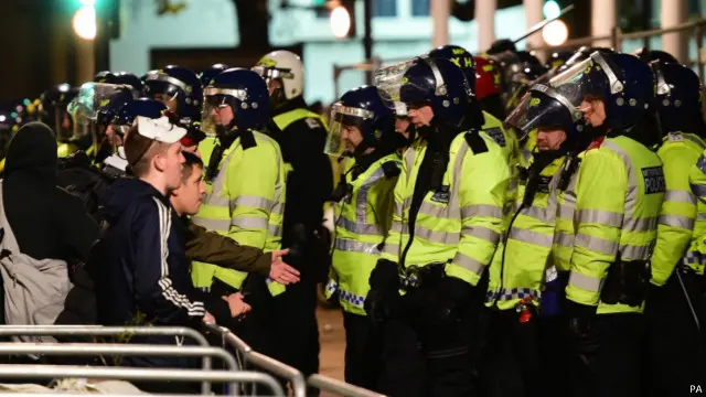 صدها نیروی پلیس در لندن در مقابل آنان آرایش گرفتند. پلیس لندن برای کنترل معترضان بعضی خیابانهای پایتخت بریتانیا را بست.