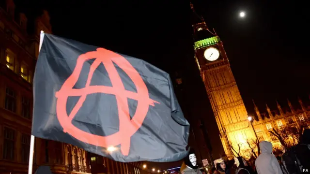 چهارشنبه عصر شماری از فعالان چپگرا و آنارشیست در لندن دست به تظاهرات زده اند.