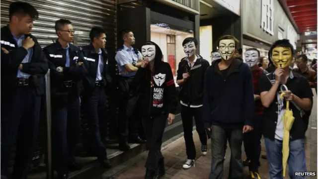 درگیری هنگامی آغاز شد که ده ها تن از هواداران دموکراسی در حالیکه صورت خود را با ماسکهای گای فوکس (که در سراسر دنیا به نمادی برای اعتراضهای مدنی و ضد سرمایهداری تبدیل شده است) پوشانده بودند، در محله منگ گنگ دست به تظاهرات زدند.