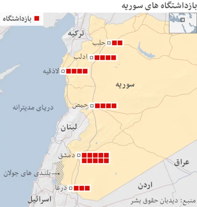 دیده بان حقوق بشر شکنجه سیستماتیک در ۲۷ بازداشتگاه دولتی در حلب، دمشق، درعا، حمص، ادلیب و لاذقیه را مستند کرده است.