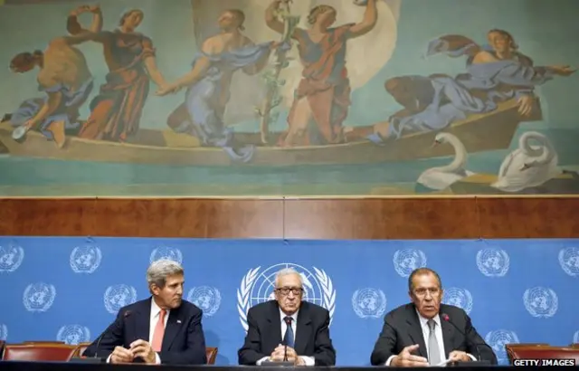 در ژانویه ۲۰۱۴ دولتهای آمریکا و روسیه به همراه نماینده سازمان ملل متحد، کنفرانس دیگری را در سوئیس برگزار کردند که هدف آن، تاکید بر اجرای توافقی بود که به بیانیه ژنو ۲۰۱۲ شهرت پیدا کرده است. بیانیه ژنو ۲۰۱۲ در حقیقت یک توافق مورد حمایت جامعه بینالملل به شمار میرود که محور اصلی آن، تشکیل نهادهای سیاسی و حکومتی انتقالی در سوریه براساس توافق و مشارکت طرفین درگیر است.