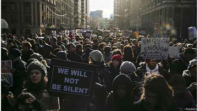 هزاران نفر از مردم در واشنگتن، پایتخت آمریکا، در راهپیمایی در اعتراض به کشته شدن چند سیاهپوست غیرمسلح به دست پلیس و رای هیات های منصفه بدوی در روزهای اخیر شرکت کرده اند.