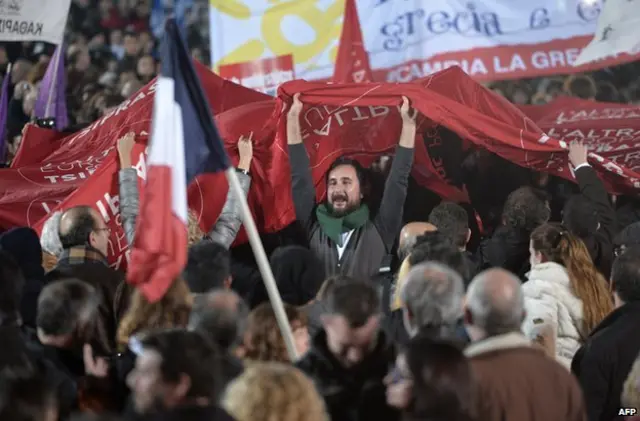 پرچمها با افتخار در اهتزاز بودند و آلکسی سیپراس، نخستوزیر جدید یونان، داشت سخنرانی پیروزی خود را ایراد میکرد. حامیان حزب چپگرای سیریزا از سراسر اروپا جمع شده بودند تا این پیروزی را با امید دگرگونی این قاره جشن بگیرند.