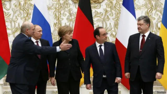 آنگلا مرکل صدر اعظم آلمان و فرانسوا اولاند رئیس جمهور روسیه میانجیگری گفتگوها برای آتش بس را به عهده دارند.