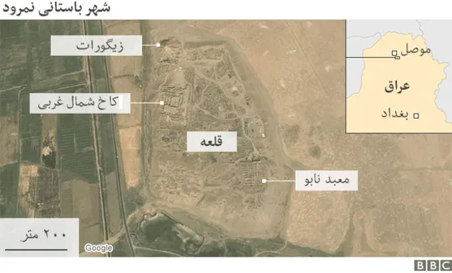مقامهای عراقی گفتهاند نیروهای داعش با بولدوزر دیوارها و مجسمههای سه هزار ساله این شهر را خراب کردهاند.<link type="page"><caption> بیشتر اینجا بخوانید.</caption><url href="http://www.bbc.co.uk/persian/world/2015/03/150306_u14_iraq_isis_bulldozed_ancient_assyrian_nimrud" platform="highweb"/></link>