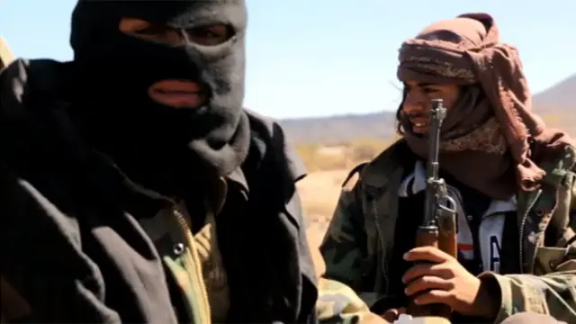 کمی بعد یک دسته سرباز با لباسهای پلنگی و تفنگ که به سوی قلمرو القاعده میروند، ما (تیم بیبیسی) را میبینند. اینجا خیلی از قبایل سنی متحد القاعدهاند، اما نه همه. اما در جنگ با حوثیها همه متحدند.