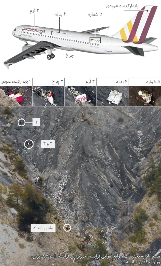 هواپیمای ایرباس ۳۲۰A شرکت هواپیمایی جرمنوینگز آلمان که سه شنبه ۲۴ مارس (۴ فروردین) از بارسلونای اسپانیا عازم شهر دوسلدورف آلمان بود، در جنوب فرانسه سقوط کرد و تمامی ۱۵۰ مسافر و خدمه هواپیما، از جمله شانزده دانش آموز آلمانی که از سفر آموزشی در اسپانیا به کشورشان باز میگشتند جان خود را از دست دادند.
