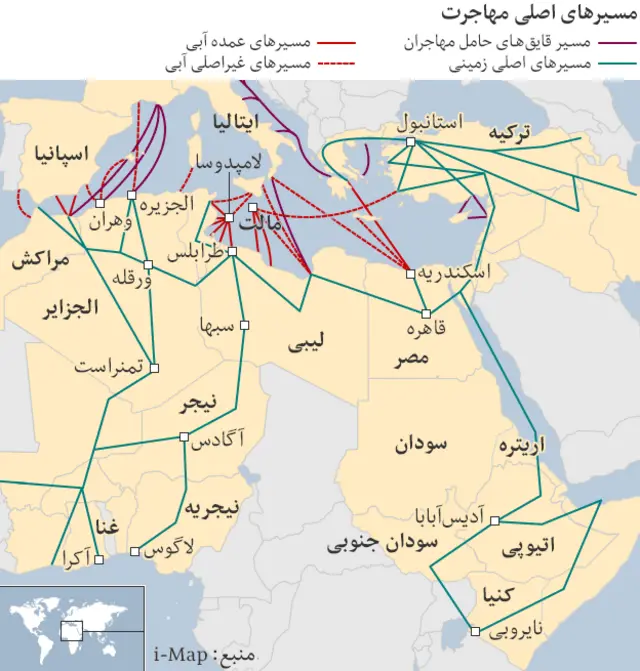 <link type="page"><caption> + بیم غرق شدن صدها مهاجر در آبهای لیبی</caption><url href="http://www.bbc.co.uk/persian/world/2015/04/150412_u04_migrants_drowned_libya" platform="highweb"/></link>