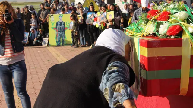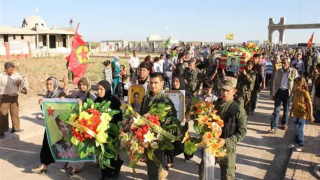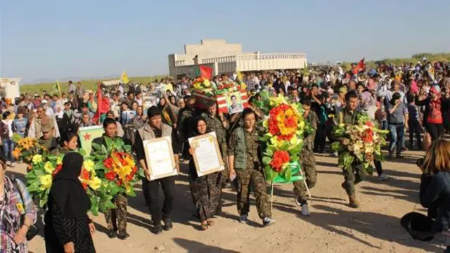 هزاران نفر سهشنبه این هفته در شهر دیرک در کانتون جزیره در مراسم تشیع جنازه محمد حسین کریمی شرکت کردند. او در یک مراسم رسمی با حضور صدها عضو ی پ گ مقامات محلی در مراسمی نظامی در گورستان شهید خبات دیرک به خاک سپرده شد.