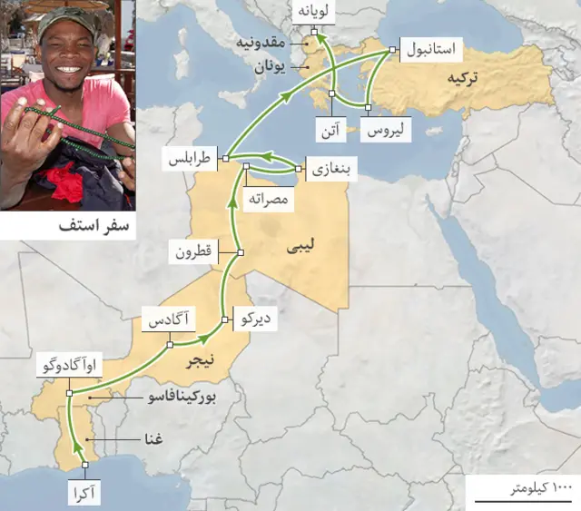 مسیر سفر: غنا به مقدونیه (غنا - بورکینافاسو - نیجر - لیبی - ترکیه - یونان)