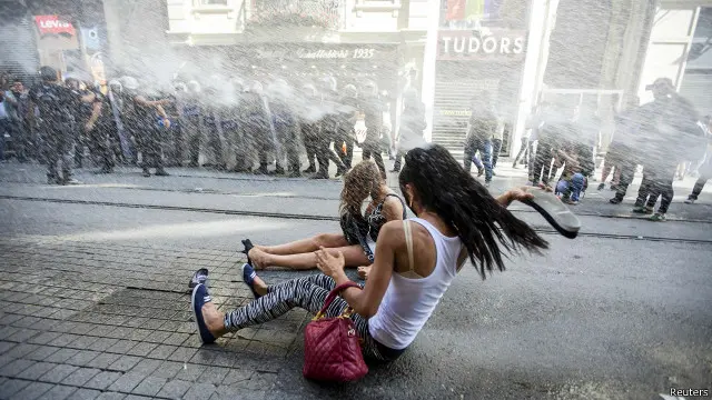 دلیل درگیر شدن پلیس با راهپیمایان مشخص نیست، اما گزارشها از میدان تقسیم استانبول حاکی است که پلیس بعد از دیدن پارچهنوشتههایی که در آن دولت رجب طیب اردوغان، رئیس جمهور ترکیه "دولت فاشیستی" خوانده شده بود، با شرکتکنندگان درگیر شد.