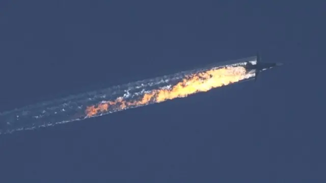 جتهای جنگنده F-16 ترکیه یک هواپیمای سوخوی ۲۴ روسیه را که در منطقه مرزی سوریه سرنگون کردند. خلبان و کمک خلبان این هواپیما با چتر نجات بیرون پریدند، اما دست کم یکی از آنها در اثر تیراندازی پیکارجویان کشته شده است. بعضی گزارش ها از کشته شدن نفر دوم هم حکایت دارد.