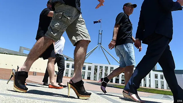 به این مناسبت گروهی از کارمندان مرد وزارت امور خارجه و تجارت استرالیا با پوشیدن کفشهای زنانه در مقابل پارلمان این کشور در شهر کانبرا، پایتخت استرالیا جمع شدند.