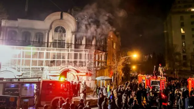 گروهی از معترضان به اعدام شیخ نمر باقر النمر، روحانی برجسته شیعه در عربستان، عصر روز شنبه (۲ ژانویه/۱۲ دی) با حمله به ساختمان سفارت عربستان سعودی در تهران وارد آن شده و آسیبهایی به آن وارد کردهاند.