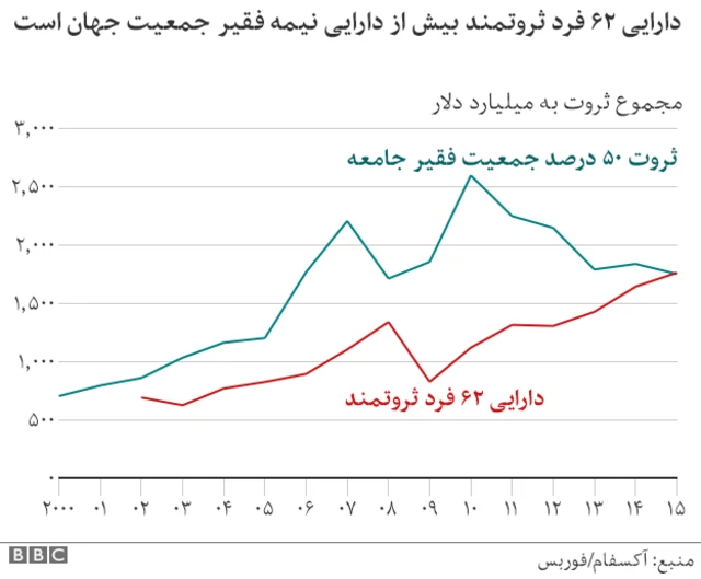 آکسفام ضمن هشدار در این باره گفته است که اگر روند نابرابری فعلی ادامه یابد، انتظار میرود که این یک درصد ثروتمند، مالک بیش از ۵۰ درصد از دارایی های جهان در سال جاری میلادی (۲۰۱۶) شوند.