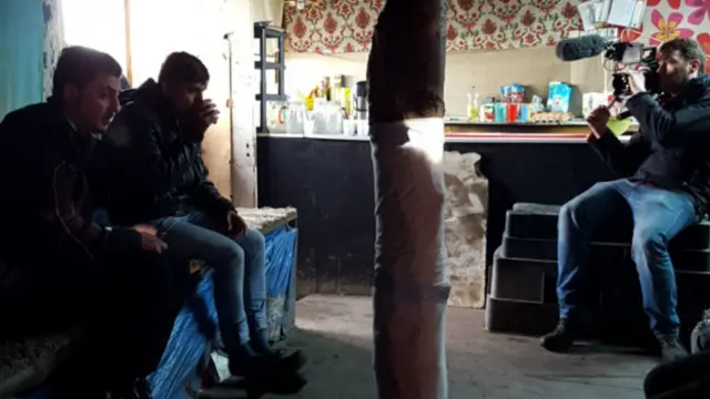مردان جوان افغان بیرون خیمهها ایستاده بودند، سیگار میکشیدند و با در جا تکان خوردن سعی داشتند خودشان را گرم نگه دارند. به سمت اولین گروهی رفتم که دیدم و با هم شروع به احوالپرسی کردیم. گفتم از بیبیسی فارسی هستم و ناگهان همه آنها با هم شروع کردند به صحبت کردن با من. همه میخواستند داستانشان را بگویند.