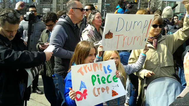 آنها پوسترهایی در دست داشتند که روی آنها نوشته بود "ترامپ را ول کنید".