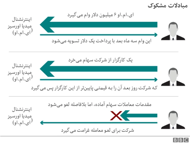 شرکت اینترنشنال میدیا اورسیز همچنین در ده ها مورد انتقال مشکوک سهام مداخله داشته است. در یک مورد این شرکت سهامی را به یک کارگزار سهام فروخت و روز بعد دوباره آن را به قیمت پایین تر خرید. شرکت آقای رولدوگین در معاملات سهام همیشه سود کرده و مدارک نشان می دهد که این سود پیش از انجام معاملات محاسبه می شده است.