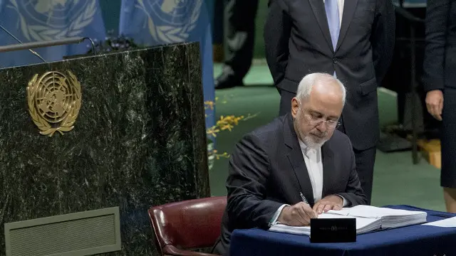 محمدجواد ظریف، وزیر خارجه ایران و جان کری وزیر خارجه آمریکا هم این پیمان را امضا کردهاند.