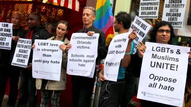 دوشنبه ۱۳ ژوئن، چند هزار نفر در مرکز لندن در اعلام همبستگی با قربانیان کشتار در یک کلوپ همجنس گرایان در اورلاندو به خیابان ها آمدند.