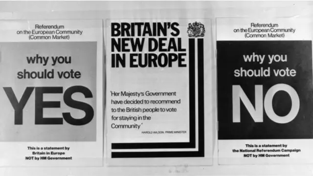 امروز دولت محافظهکار دوپاره شده. سال ۱۹۷۵ دولت کارگر دوپاره شده بود. هارولد ویلسون، نخستوزیر وقت، رهبر موافقان ماندن در اتحادیه بود. میگفت گفتگوهایش در بروکسل موفقیتآمیز بوده و بریتانیا بهترین امتیازهای ممکن را گرفته – درست مثل دیوید کامرون.