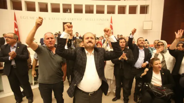تعدادی از نمایندگان مجلس ترکیه در حال ابراز مخالفت با کودتا