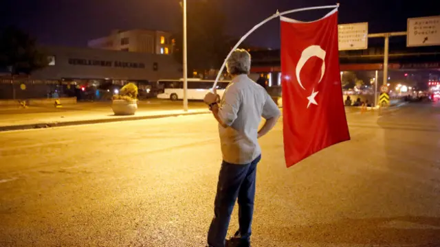 یک شهروند مخالف کودتا با پرچم ترکیه در آنکارا