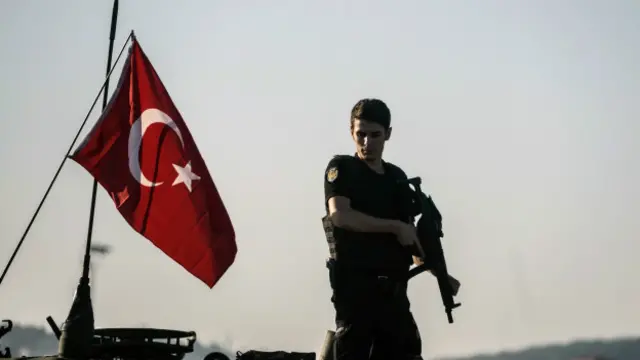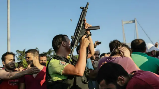 یک افسر پلیس پس از عملیات علیه عاملان کودتا بر روی پل بسفر