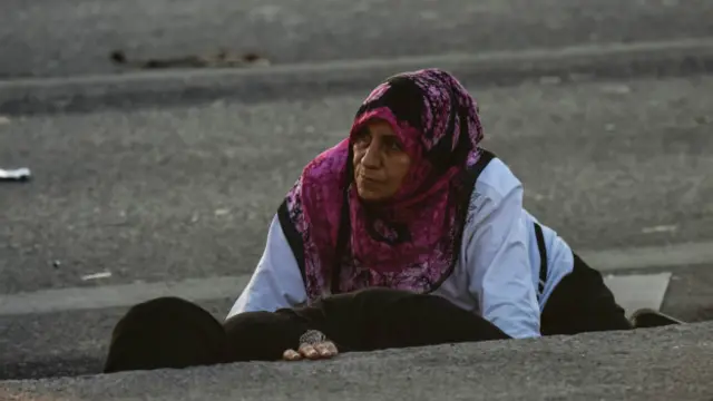 زنی که تلاش می کند روی پل بسفر از تیراندازی مدافعان و مخالفان کودتا در امان بماند