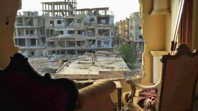 از ماه مه که آتشبس موقت اعلام شد، تقریبا هر روز خمپاره و بمب بر شهر میبارد. سفر خبرنگاران به شهر عملا غیرممکن است. من با اسکایپ گفتگو میکردم، در شرایطی که صدای انفجارهای مهیب مرتب به گوش میرسید.