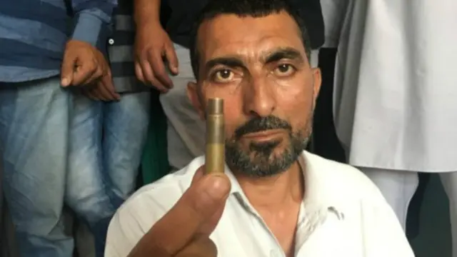 عبدالرحمان میر، از ساکنان سرینگر، پایتخت بخش هندی کشمیر، پوکهای نشان میدهد و میگوید "این گلولهای است که پسرم را کشت."