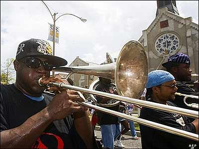 بسیاری از مردم نیواورلئان در دومین سالگرد توفان کاترینا در مراسم احیایی که در محله فرانسوی نشین نیواورلئان برپا شد، شرکت کردند.