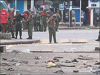 سربازان برای متفرق کردن هزاران نفر از مخالفان حکومت در شهر رانگون، بار دیگر به سوی آنها تیراندازی کردند.