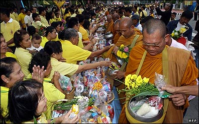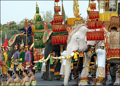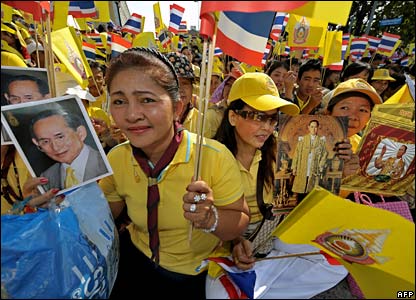 ده ها هزار تایلندی برای شرکت در جشن هشتادمين سالگرد تولد بومیبول آدوليادج، پادشاه کشورشان در خیابانهای بانکوک حضور یافتند. او 61 سال است که در تایلند سلطنت کرده و از اين نظر قديمی ترین پادشاه زنده جهان محسوب می شود. شاه تایلند در متن کوتاهی که خواند مردم کشورش را به همبستگی ملی دعوت کرد. قرار است اين جشنها تا چند روز ديگر همراه با مراسم مذهبی بودائيان، مسلمانان، مسيحيان و هندوهای تایلندی در سراسر کشور ادامه یابد.