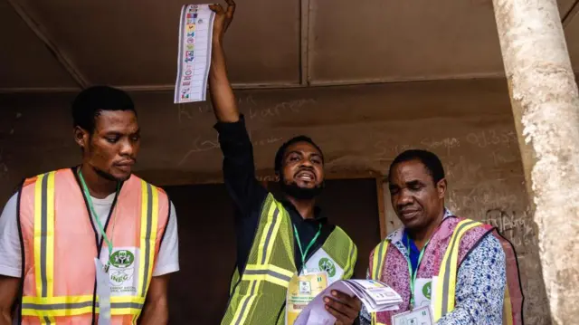 Di Independent National Electoral Commission Returning Officer, Philip Akpen announce di result on Sunday 22 February.