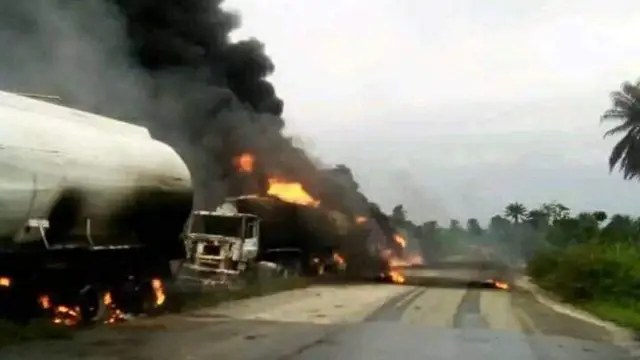 Chief Press Secretary to di Council boss Chinwi Ate explain to BBC Pidgin say wetin actually cause di explosion na some pipo wey come see as di tankers dey burn.