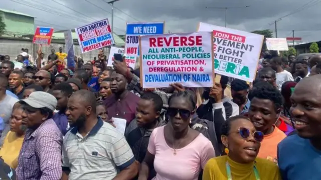 Di protesters voice dia anger against high cost of living; make goment reverse di removal of petrol subsidy, end corruption and bad governance wey don affect millions for Africa most populous kontri.