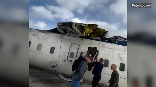 Dan Ronan, one journalist and pilot wey dey licensed by US Federal Aviation Administration (FAA) wey bin tok to BBC News say im observe as e land e be like say di plane hit di runway, den slide for some distance and den turn upside down.