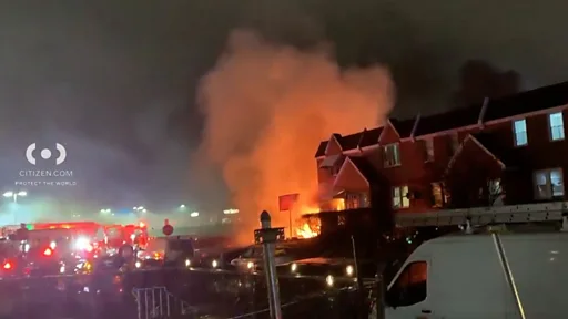 Emergency crew rush enta di scene and streets fill wit residents and di burning pieces of di aircraft.