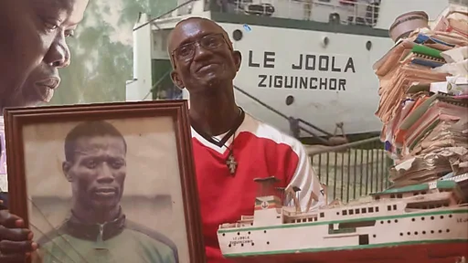Di Joola na Senegal goment owned boat wey dey carry traders from di south of Senegal, di Cansamace go di kontri capital of Dakar go sell market so dem go fit come back with goods.